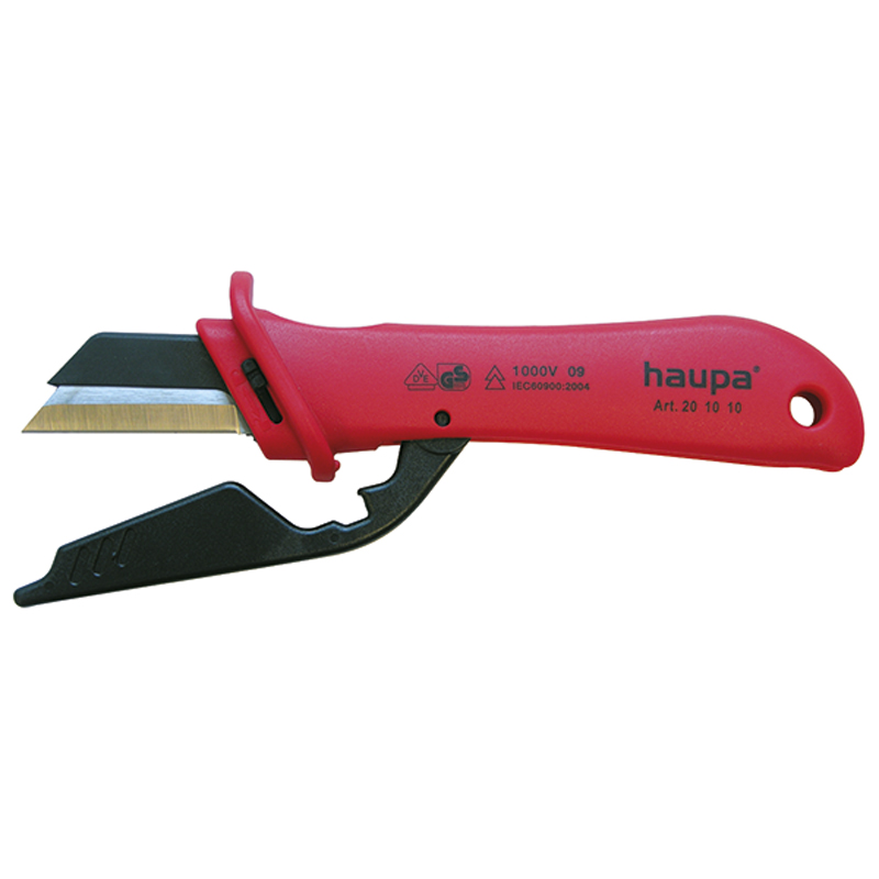 Sa ravnim, delimično izolovanim, jakim sečivom, zamenljivim, ručkama od čvrste elastične plastike otporne na udarce, promenljivim noževima, fiksnim štitnikom sečiva. Primena: Za sprečavanje kratkog spoja